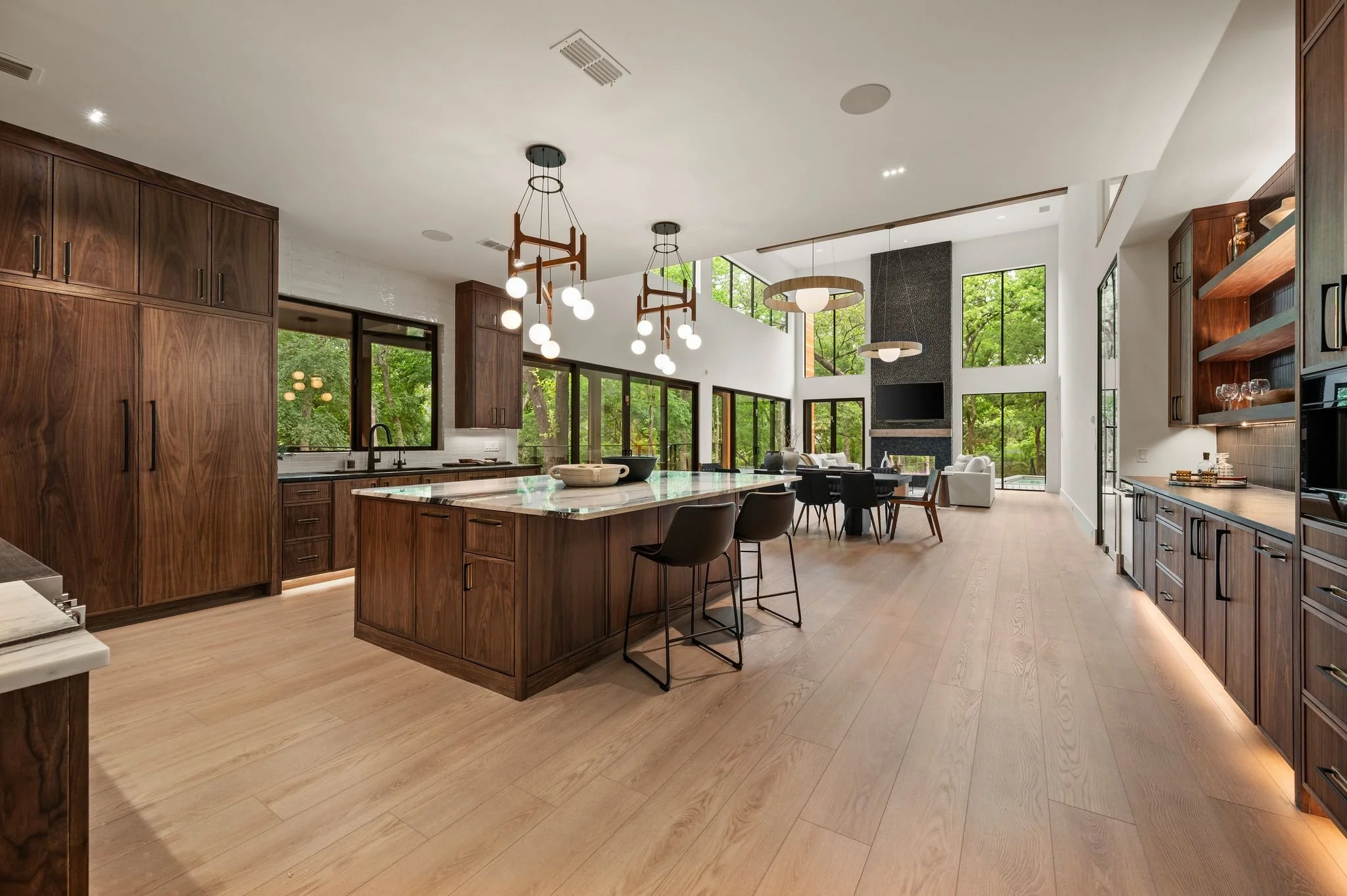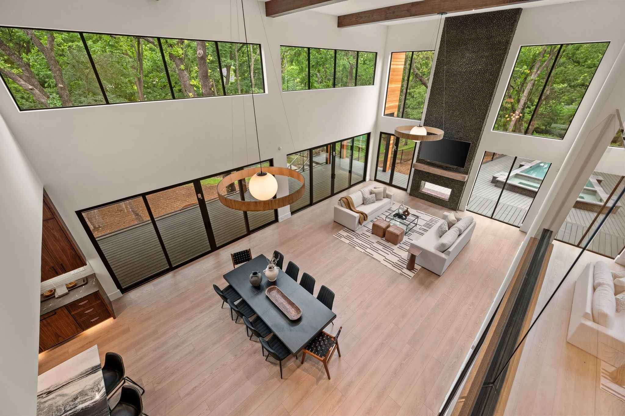 Tucked beneath a canopy of trees on a full acre in Southlake, this newly completed estate welcomes you with a sense of quiet elegance. As the greenery parts and the home comes into view, it feels as if it’s always belonged here—perfectly placed, effortlessly inviting. Inside, soaring 21-foot ceilings and expansive glass walls create a seamless connection to nature, bathing the space in shifting light and tranquil views.